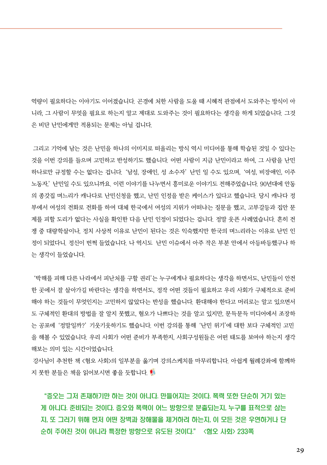 [강좌후기] 난민 이야기 : 환대와 혐오사이 (18년 11월)