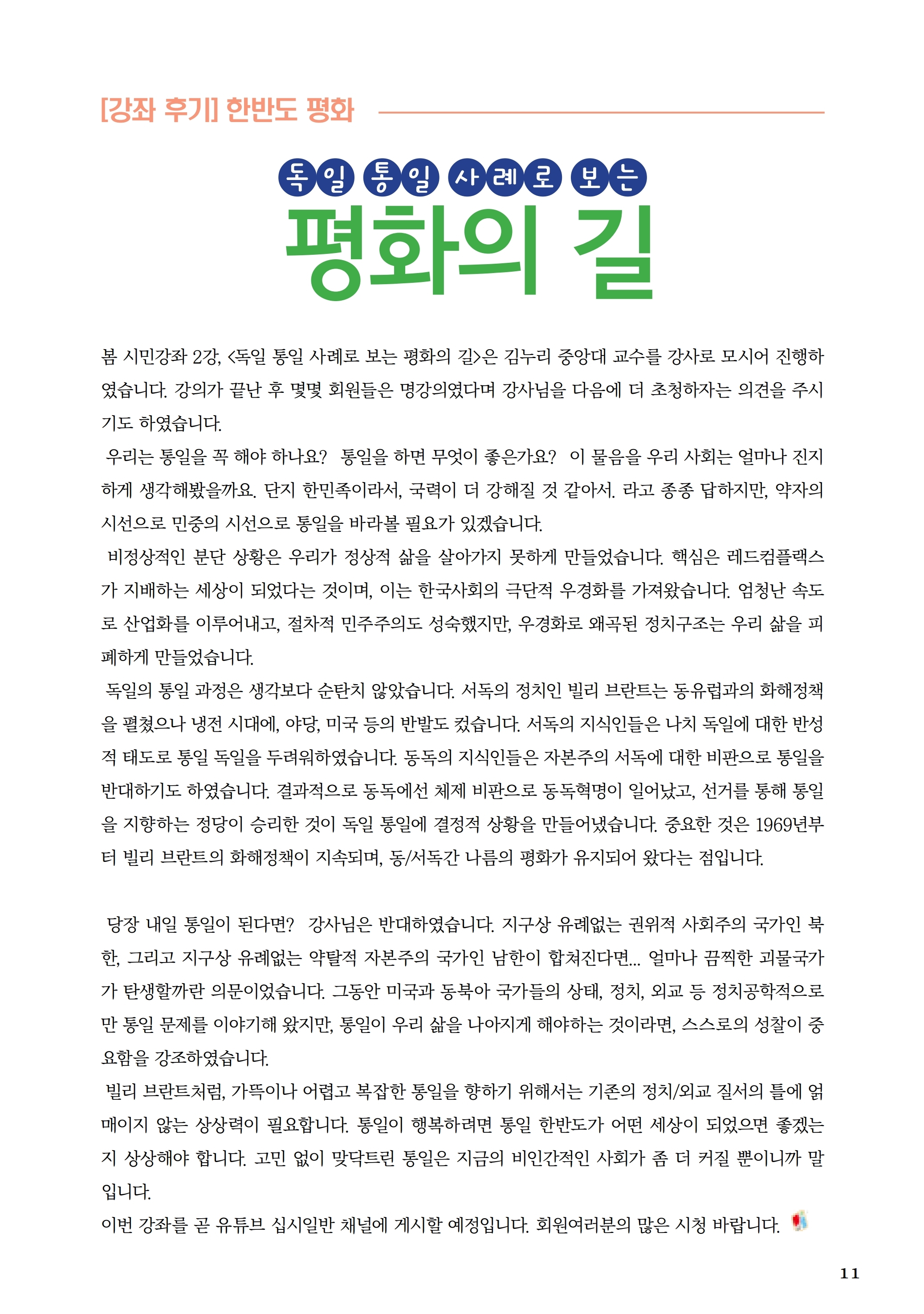 [강좌후기] 독일 통일 사례로 보는 평화의 길 (19년 4월)