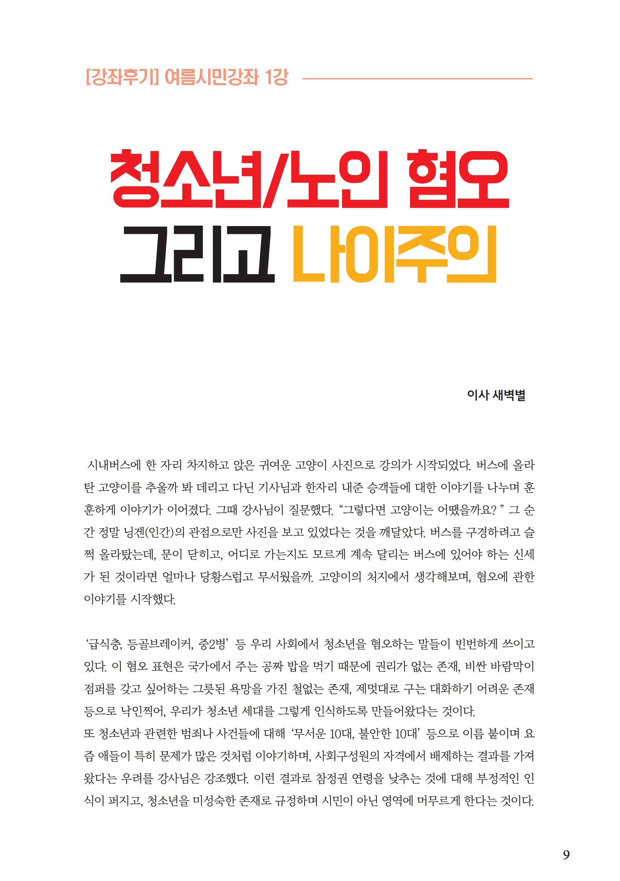 [강좌후기] 청소년/노인 혐오 그리고 나이주의 (19년 7월)