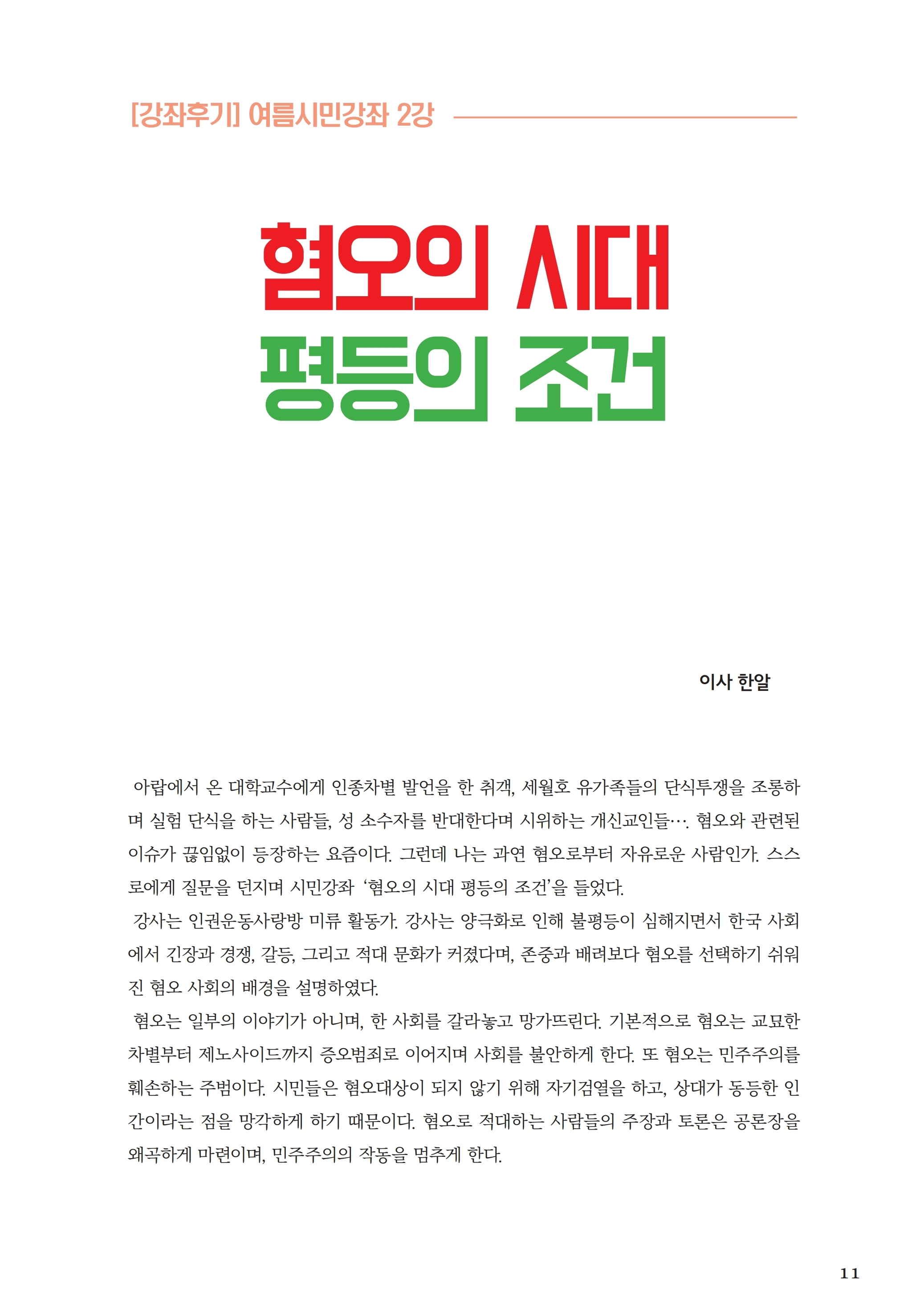 [강좌후기] 혐오의 시대, 평등의 조건 (19년 7월)