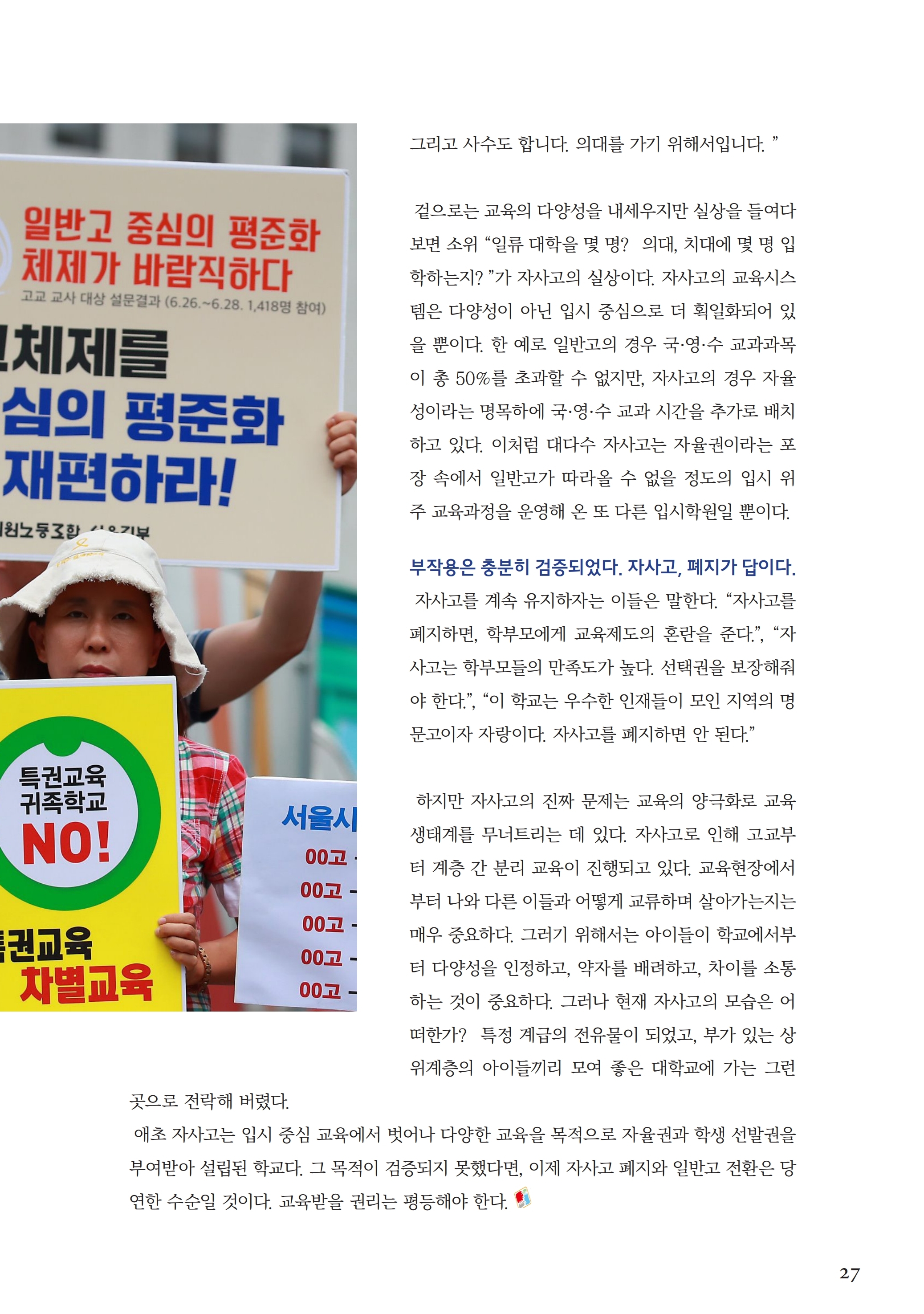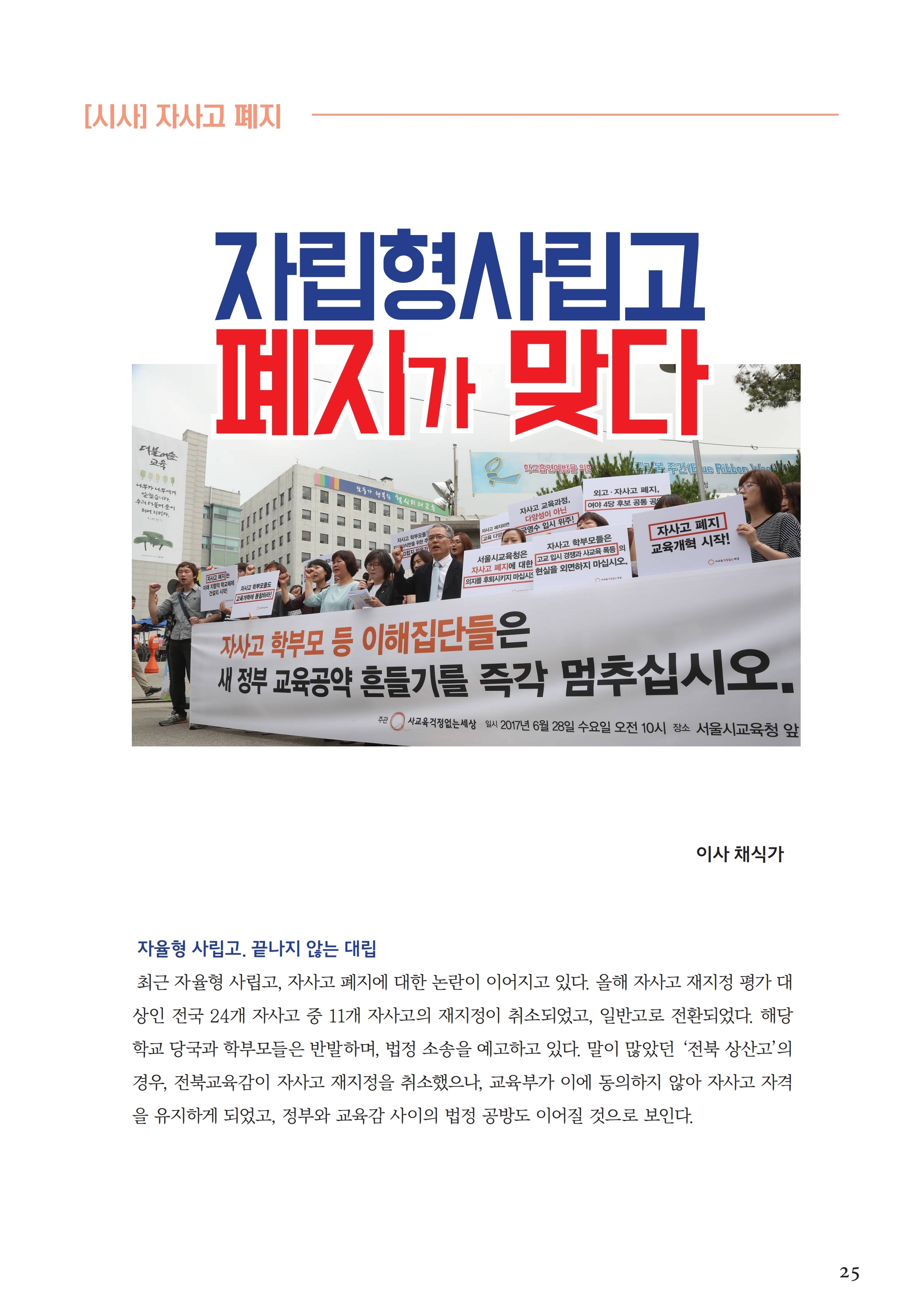 [시사이슈] 자립형사립고 폐지가 맞다 (19년 8월)
