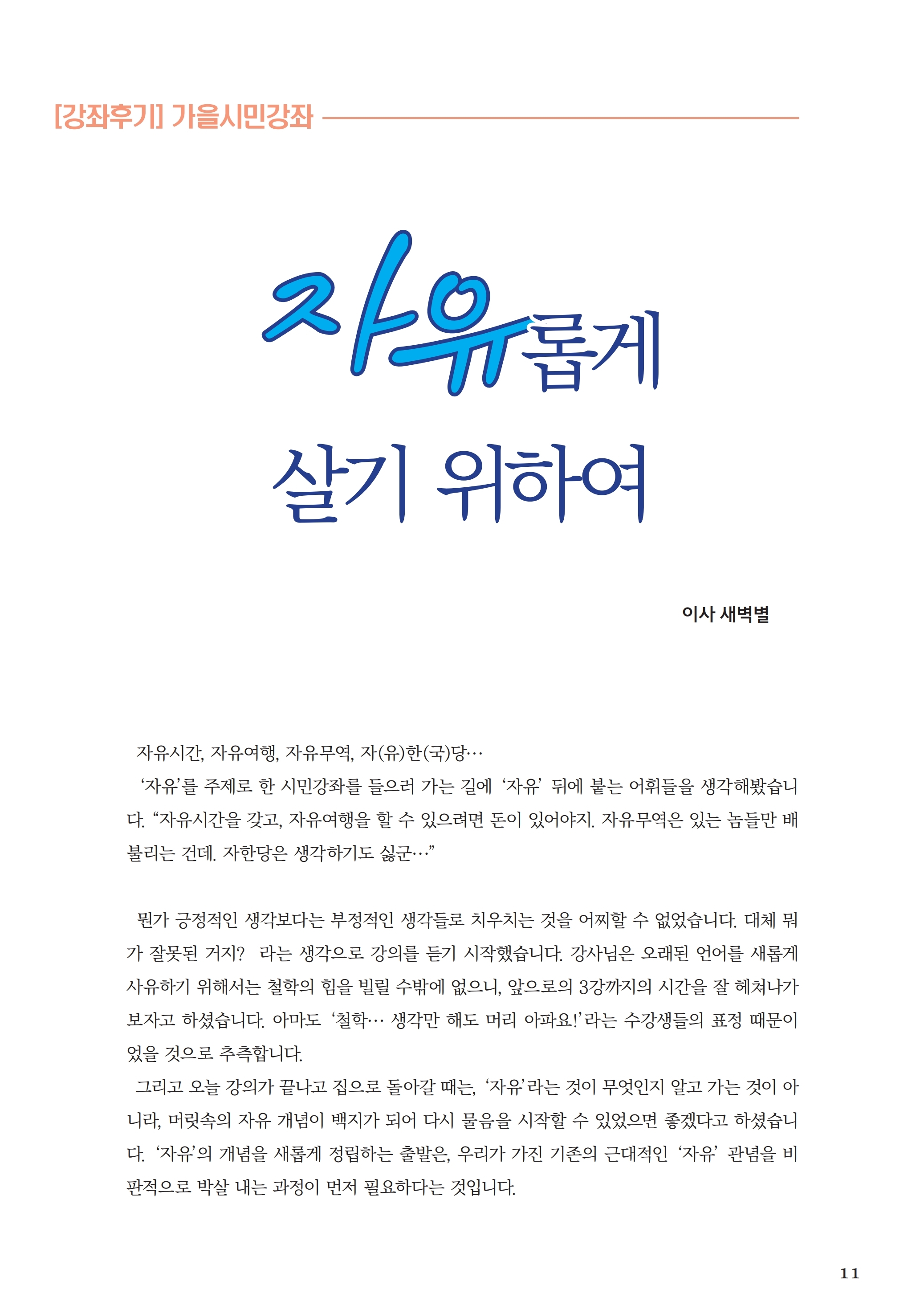 [강좌후기] 가을 시민강좌 - 자유 (19년 9월)