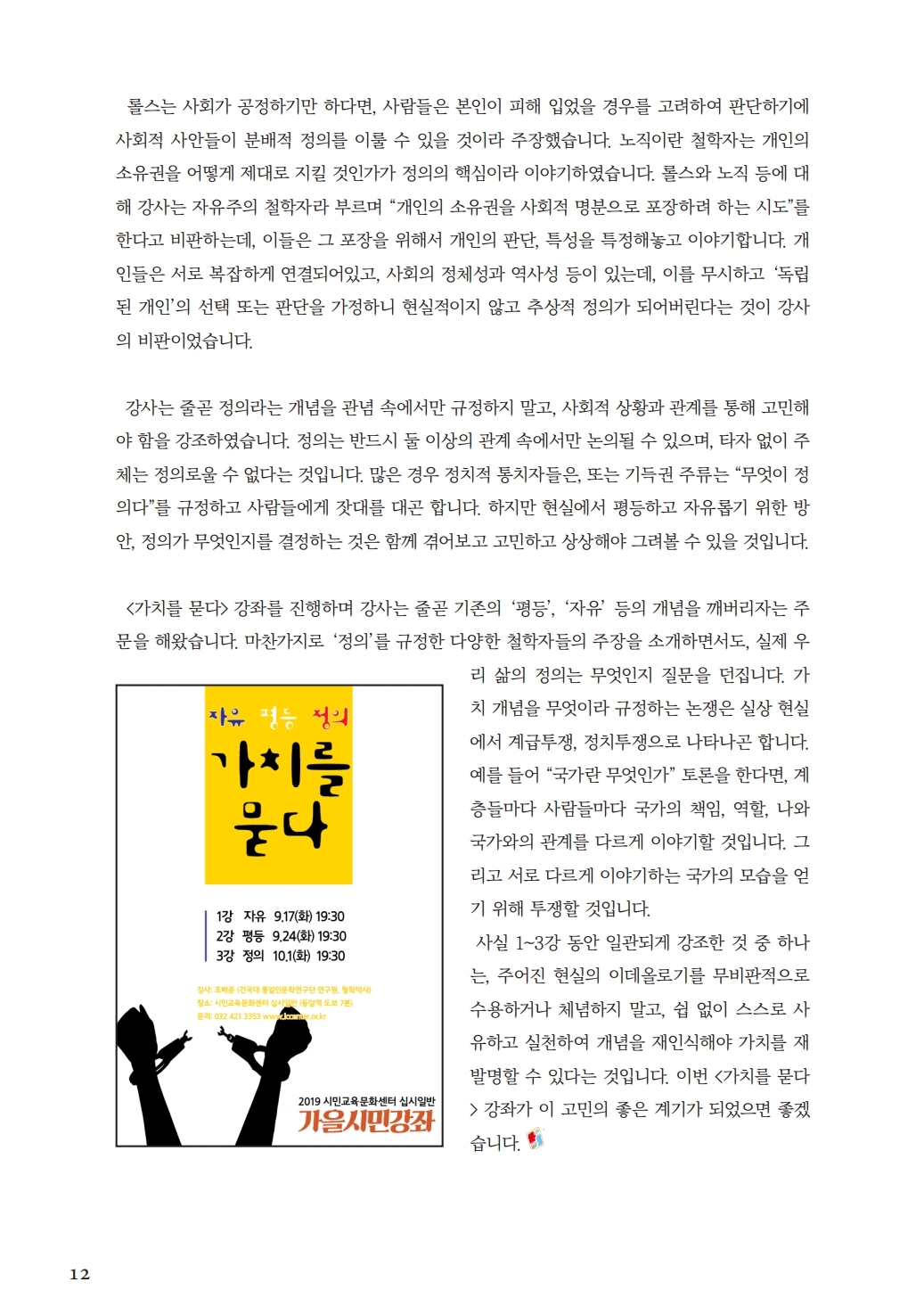 [강좌후기] 가을 시민강좌 - 정의 (19년 10월)