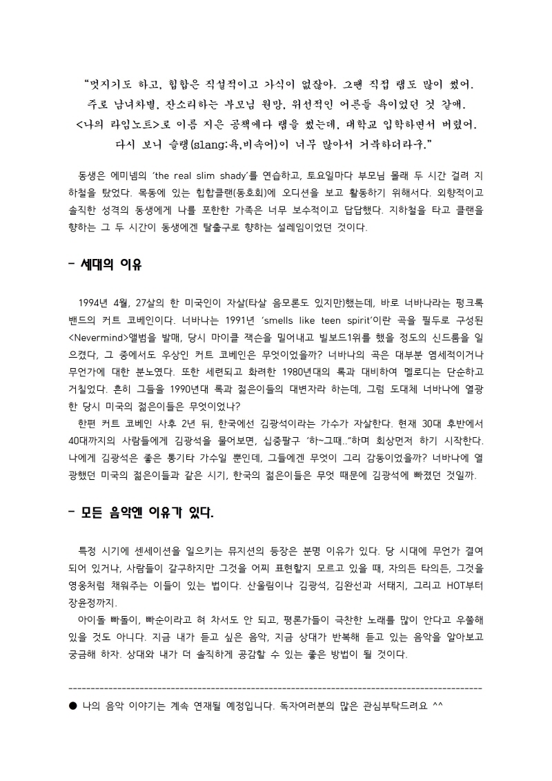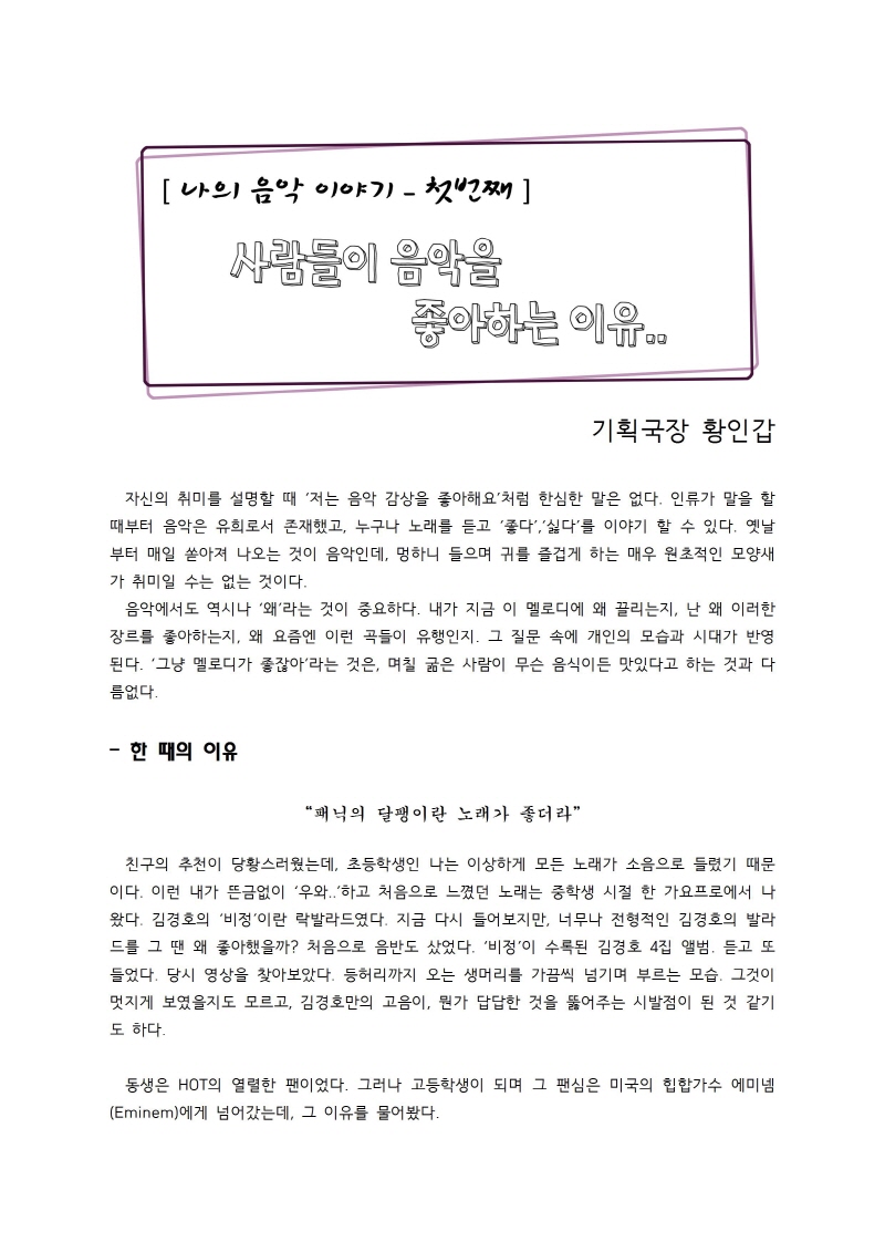 [갑이의 음악이야기-첫번째] 사람들이 음악을 좋아하는 이유 (13년 6월)