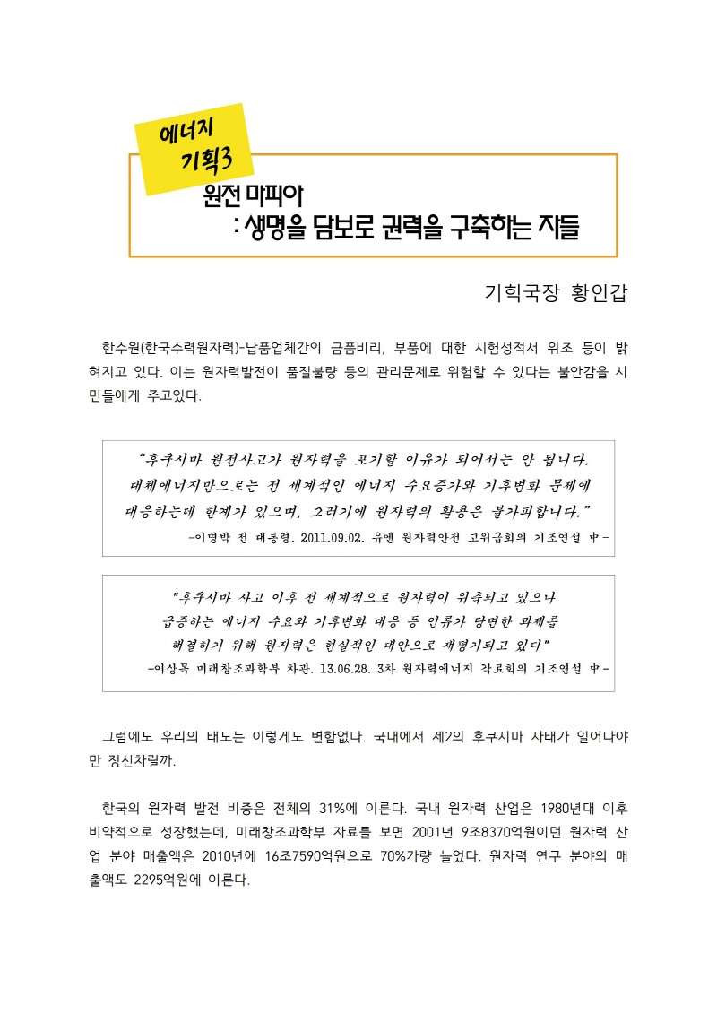 [기획.에너지3] 원전마피아 : 생명을 담보로 권력을 구축하는 자들 (13년 7월)