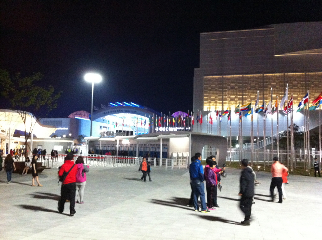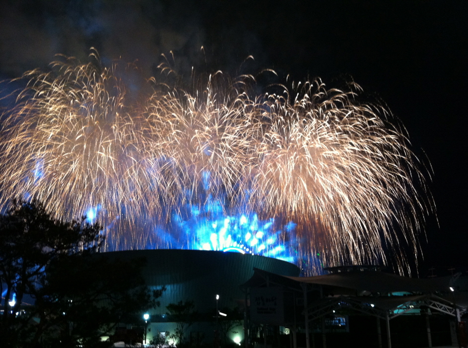 5월12일 엑스포개막을 하루 앞두고 전야제를 다녀왔어요! 다녀왔다기엔 좀 뭐한데 얘기를 하자면.. 그저께 사장님이 왔는데 바빠도 전직원 다 전야제라도 보라고 이사님이랑 소장님한테 골백번 얘기했었고 이사님도 공사는 우리가 했는데 구경한번 못하니까 소외되는 것 같다며 꼭 가자했었죠. 전 좀 회의적이었습니다. 과연 개막전날 원청에서 우릴 쉬게 놔둘까? 아니나 다를까 현장은 야간작업. 못가나보나 했는데, 다행히 빨리 끝나서 7시전에 행사장으로 출발! 행사장 근처인 여수역엔 도착했는데, 주차할 때가 없네요. 그냥 길가에 세웠지요. 경찰이 그러시면 안된다며 차를 막으려 했지만 그냥세움. 이사님은 다들세웠는데 어찌냐며 엑셀 밟으셨고, 부장님은 우리가 주차장 만들었다며 따지셨고 과장님은 웃으면서 담배 무셨고.ㅋㅋㅋ 암튼 내리니까 불빛이 훤한게 시내나들이 기분이 나더군요. 시장들 하시니까 김밥이랑 바나나 우유까지 샀어요. 나름 설레면서 걸었는데 이게 웬일!행사장 안으로 못들어가는 겁니다.여수시민들도 휀스 밖 길가에서 목내밀고 있네요. 대통령이 와서 경호문제로 초청권 없으면 못들어간데요..다들 급MB규탄을 하던 중. 개막선언과 함께 폭죽이 터집니다. 우와~현장에서 쓰기 불편하다며 스마트폰 산 걸 후회하시는 과장님도이때만큼은 헨드폰으로 폭죽 사진을 찍고, 개막식 생중계 DMB로 보는데 여념이 없으십니다. 개막행사중인 BIG-O와 폭죽을 휀스 밖에서 찍은 사진들이에요.폭죽터지는 순간 만큼은 기분도 화려했습니다. 간만에 불빛밝은 시내에 나오니까 숨쉬는 것 같았네요. 현장 막내인 제가 스물아홉.나머지 고참들은 모두 오십대. 과장님은무려 환갑이세요.함께 안간 소장님도 오십대니까우린 3040 이런거 없어요.ㅋㅋㅋ 그래도 "에이 춥기만 하네"하시면서 다음 폭죽을 기다리십니다.ㅋㅋㅋ 버티다가 다들 추워하셔서 함바집으로 철수하고삼겹살에 소주한잔 하고 맘편히 잤습니다.ㅎㅎㅎ