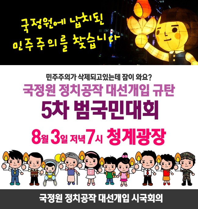 어김없이 토요일 저녁에는 국정원 선거개입 규탄! 제대로 된 국정조사를 촉구! 하는 촛불집회가 열렸습니다. 센터에서도 여러 회원들과 함께 촛불을 들기 위해 청계광장으로 갔습니다.